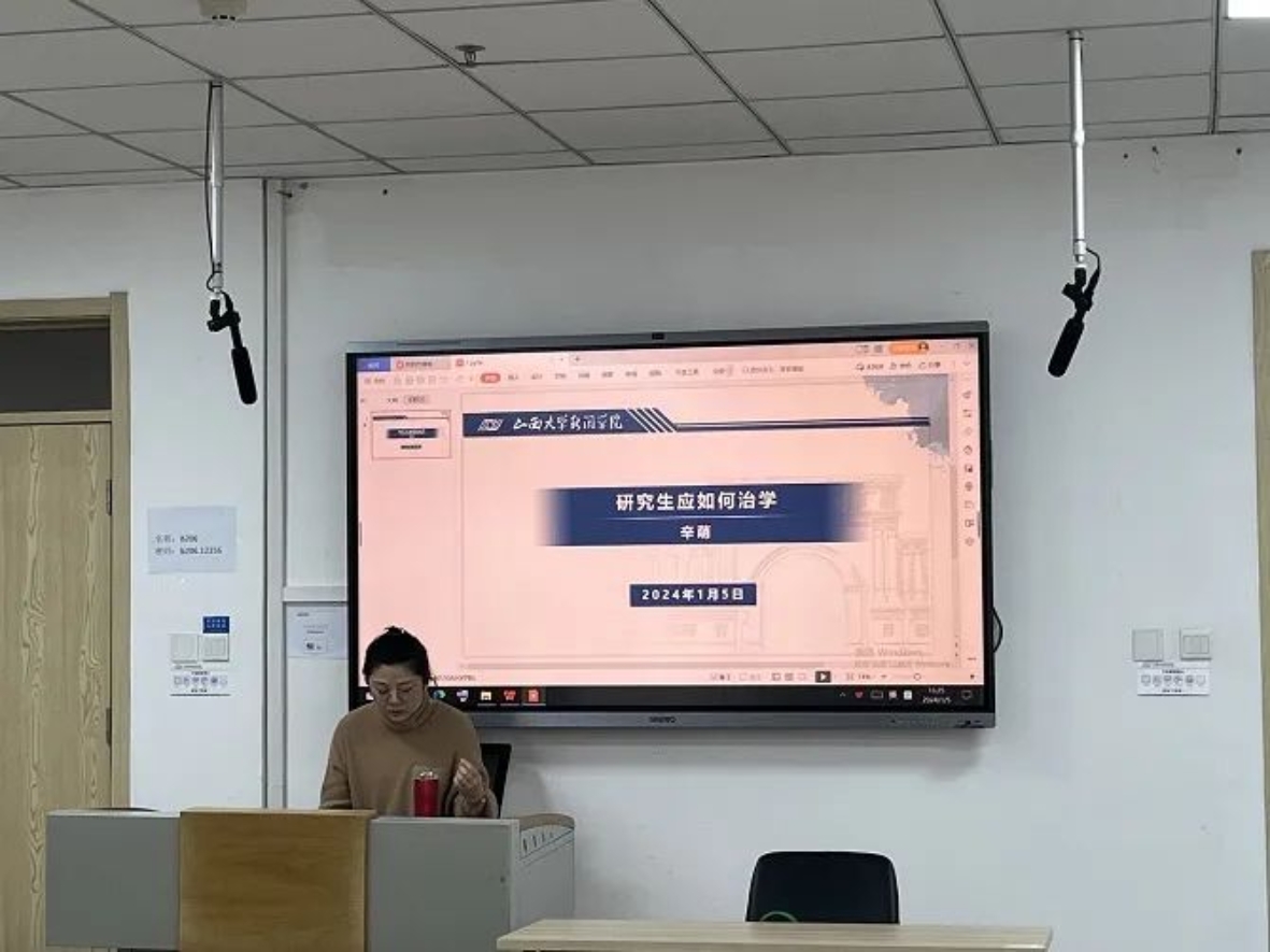 讲座伊始,辛萌老师向同学们提出问题:本科生与研究生学习有何区别?在学生们发言的基础上,辛老师进行总结,指出研究生最核心和最重要的学习任务就是做学术研究。辛老师具体讲解了什么是治学,研究生治学应当持有怎么样的治学态度。辛老师从治学境界谈起,告诉同学们研究生治学首要任务必须要有明确和端正的治学态度——刻苦、勤奋。研究生应将学习、科研落实在每一天,日日勤奋,注重积累。治学必须要克服惰性,把勤奋、刻苦、奋进内化在每天的实际行动中,形成习惯,养成勤奋的惯性。学问是个慢功夫,贵在勤奋、认真、刻苦与坚持。