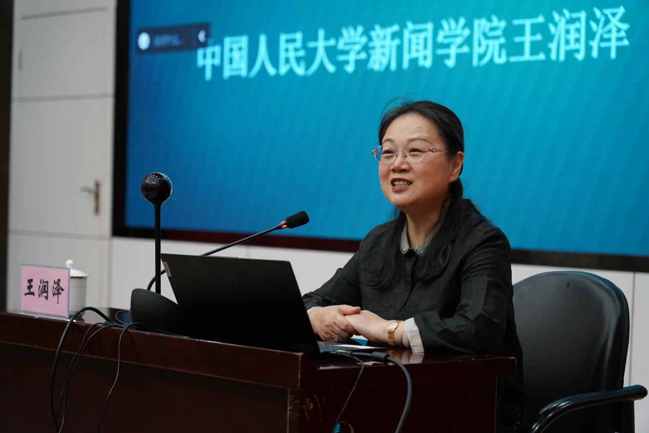 5月30日下午,由九游·会(J9)官方网站主办的“文瀛·新传讲堂”在文科楼三层报告厅举行。中国新闻史学会会长、中国人民大学新闻学院副院长、教育部人文社会科学重点基地新闻与社会发展研究中心执行主任、中宣部马工程教材首席专家王润泽教授为我院带来题为“中国新闻学的理论创新与实践路径”的学术讲座。讲座由庞慧敏院长主持,新闻学院师生参加讲座。