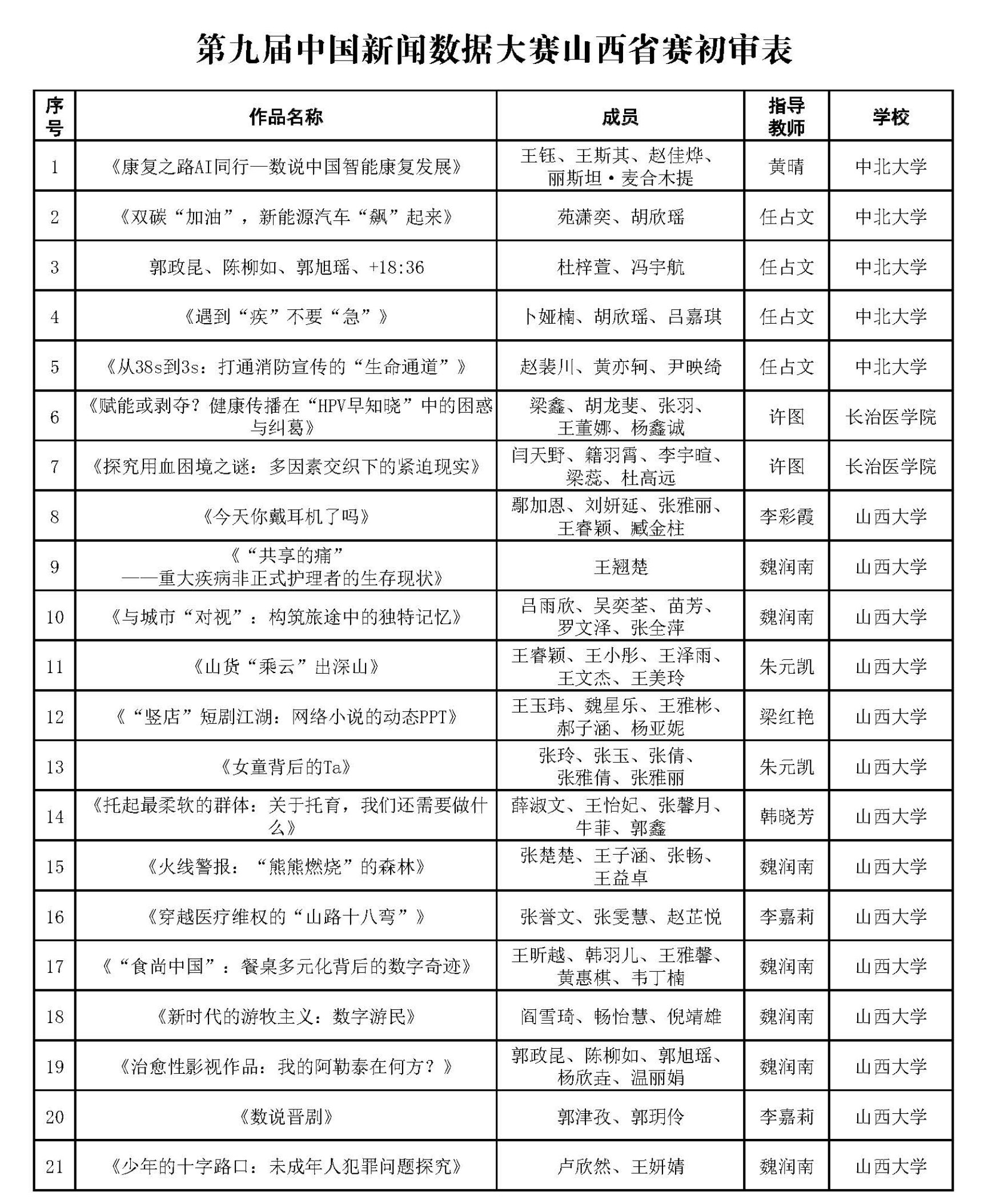 第九届中国数据新闻大赛山西省赛初审名单公示