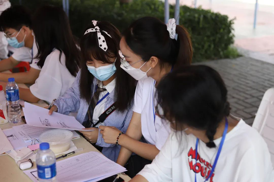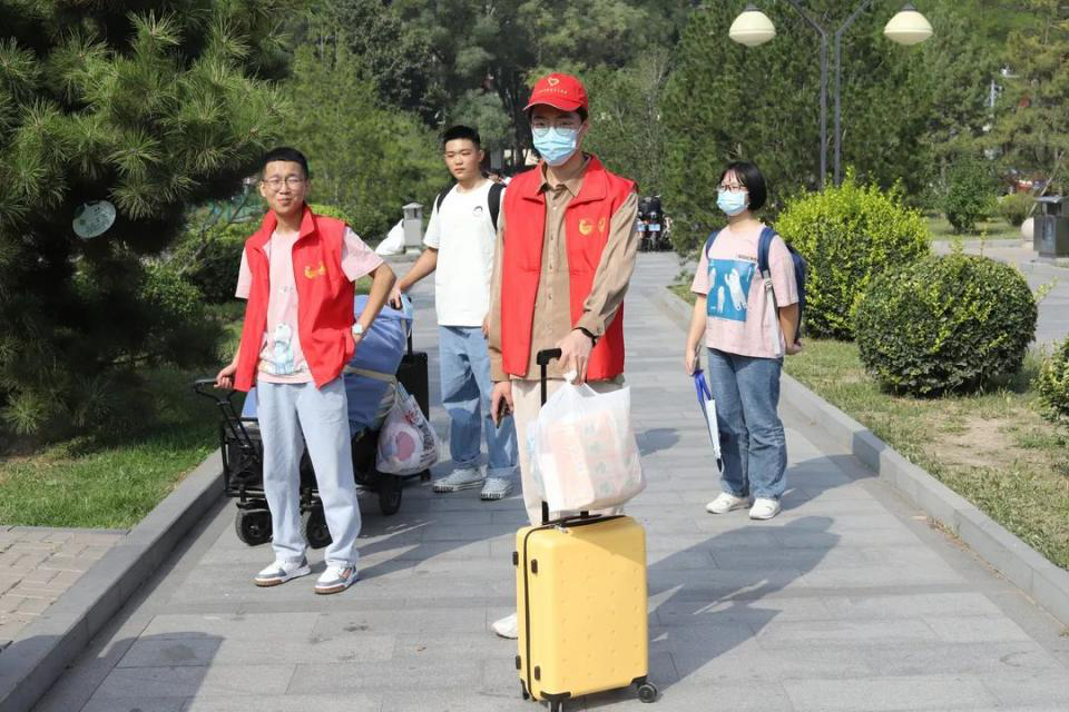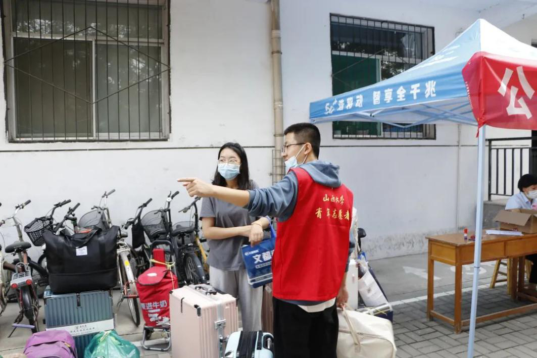 今年依旧是抗击疫情不可松懈的阶段,为防范新冠疫情,迎新的相关工作人员全程佩戴口罩,在学校西门学院迎新处以及新生宿舍楼下耐心等待,为新生提供最大的便利。