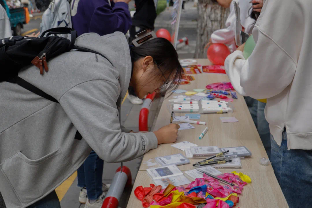 活动伊始,同学们便前来参与其中,纷纷拿起彩笔在便利贴上写下自己对未来的期望并抒发自己对祖国的诚挚爱意。此外,本次活动还设有拍照和录制祝福视频环节。镜头前,同学们面带微笑,青春洋溢,向祖国送上了最美好的祝愿。活动中,学生会成员各司其职,默契配合,为活动的成功举行贡献了自己的一份力量。活动现场气氛热烈,形成了一道独特的风景线。
