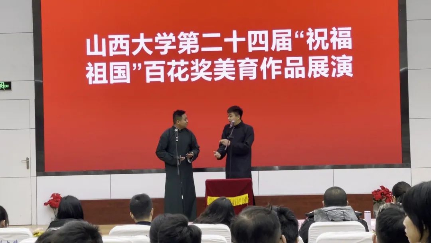2021年11月,山西大学第二十四届“祝福祖国”百花奖如期举行,我院共有话剧《高君宇》、朗诵《在中国大地上报道》和相声《家风传万代》三个节目参加比赛。21下午,语言类节目决赛于音乐厅举行。最终,我院话剧《高君宇》获得二等奖,朗诵《在中国大地上报道》获得三等奖,取得了优异成绩。