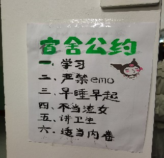 我们宿舍非物有天华,但那也算是人杰地灵之地。宿舍六人不可谓不是人才辈出也,有妙手丹青者,通晓天文地理者,撰文如行云流水者,口若悬河者,也有交友甚广、消息灵通之人。平日里大家同舟共济,携手并肩。在学习上不输他人,在生活中也自强不息,奋勇争先。这是一个团结奋进、朝气蓬勃、温暖河蟹的小集体。