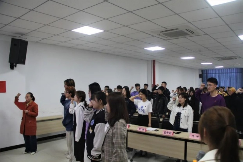 2021年4月26日13时,于新闻学院多功能报告厅举行了新团员入团宣誓仪式。新闻学院团委书记张丽老师、团员代表、新团员参加此次入团宣誓仪式。