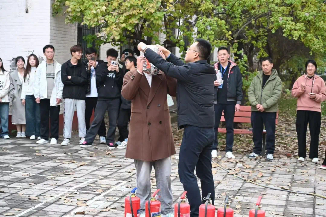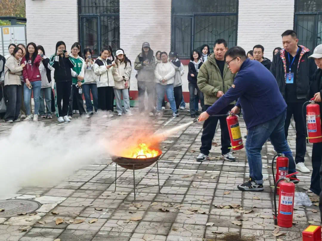 在文科楼北侧空地,保卫部副部长李剑利结合校园防火工作实际,向同学们进行了消防知识普及,重点讲解了灭火器、消防水带等消防器材的使用方法、注意事项及火灾现场应急处置方法。通过实际操作,大家不仅掌握了灭火器的正确操作步骤,还深刻感受到了消防安全的重要性,此次消防专题活动取得了圆满成功。