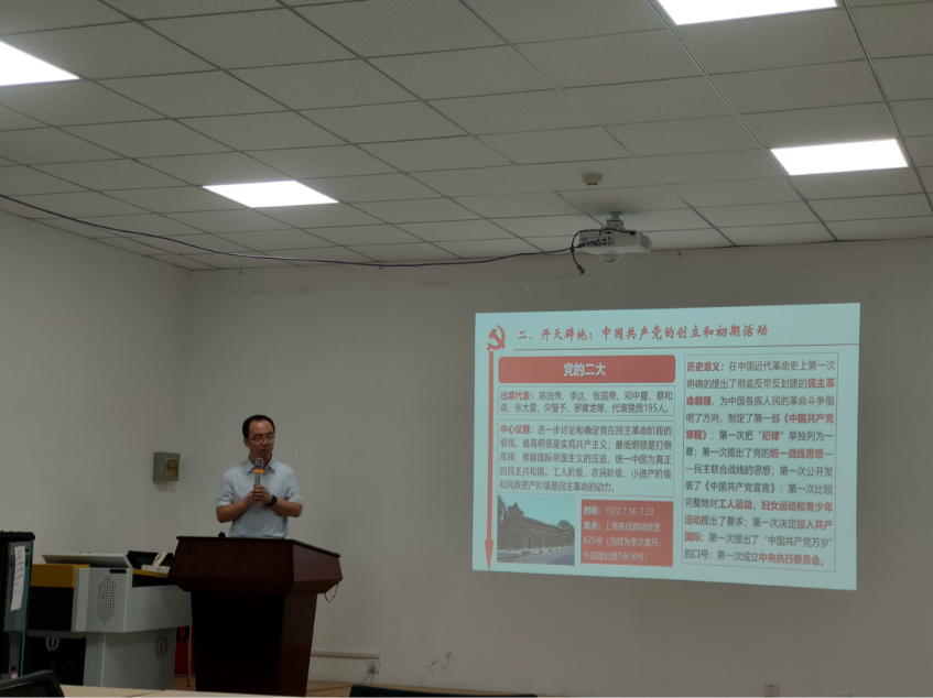 周亚教授从“山雨欲来,开天辟地,疾风骤雨,星火燎原,中流砥柱,摧枯拉朽”六个部分全面讲述了中国共产党创立的背景、过程和发展壮大,并最终执政的伟大征程。