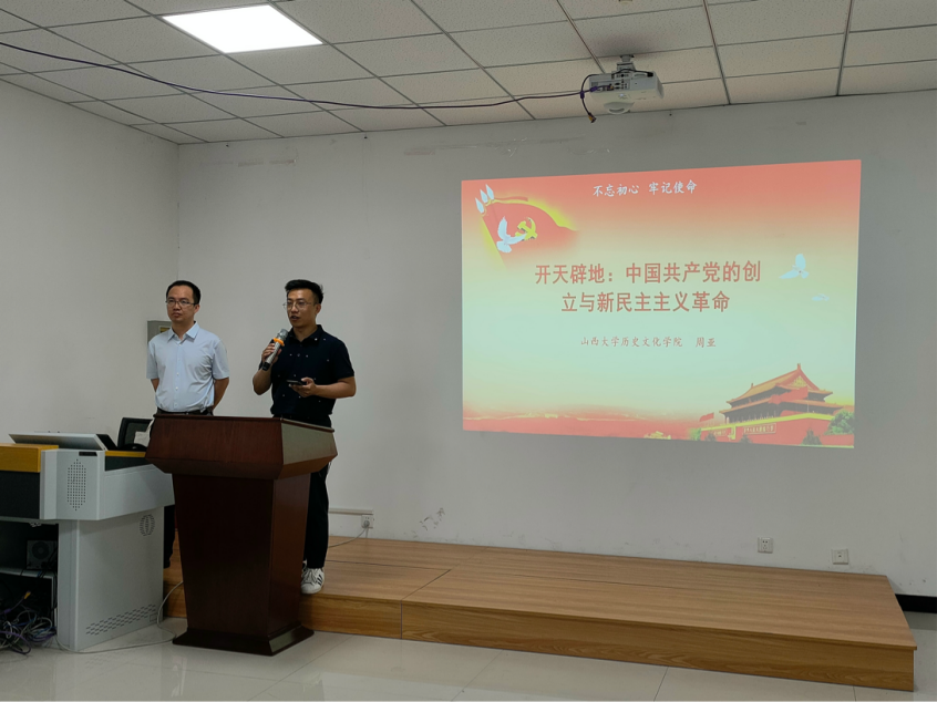 “学史知来,初心如磐”,为庆祝中国共产党成立100周年,深入学习贯彻习近平总书记在党史学习教育动员大会的重要讲话精神,在“学党史、悟思想”中不断唤醒红色基因、坚定理想信念,2021年6月2日,九游·会(J9)官方网站特邀山西大学历史文化学院教授、博士生导师、山西大学民间文献整理与研究中心执行主任、山西省中共党史人物研究会副会长周亚在新闻学院大会议室作题为《开天辟地:中国共产党的创立与新民主主义革命》的专题讲座。新闻学院研究生第二党支部书记郝强老师主持讲座,新闻学院本科生和研究生党员、积极分子到场聆听。