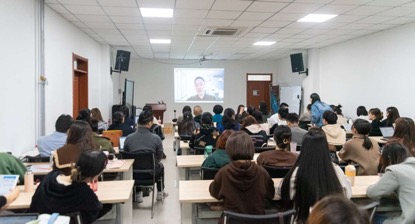 于国栋教授讲座的题目是《Doing being objective: Turn design in the preliminary to a journalist’s question at the press conference of the National People’s Congress of China》,就新闻发布会记者提问进行会话分析。他以2015-2019年全国人民代表大会年度新闻发布会为研究数据,以会话分析为研究方法,用生动的研究实例展现了媒介话语的研究过程,探讨了如何设计提问的背景陈述构建客观性。除此之外,他还分析了如何用语言手段构建观点和事实等问题。会话分析是一种关注细节的研究方法,在机构谈话中的应用价值很大,于国栋教授建议,在座师生可以运用会话分析研究媒体如何站在国家立场发声,从而让西方受众正确理解中国媒体的内容。