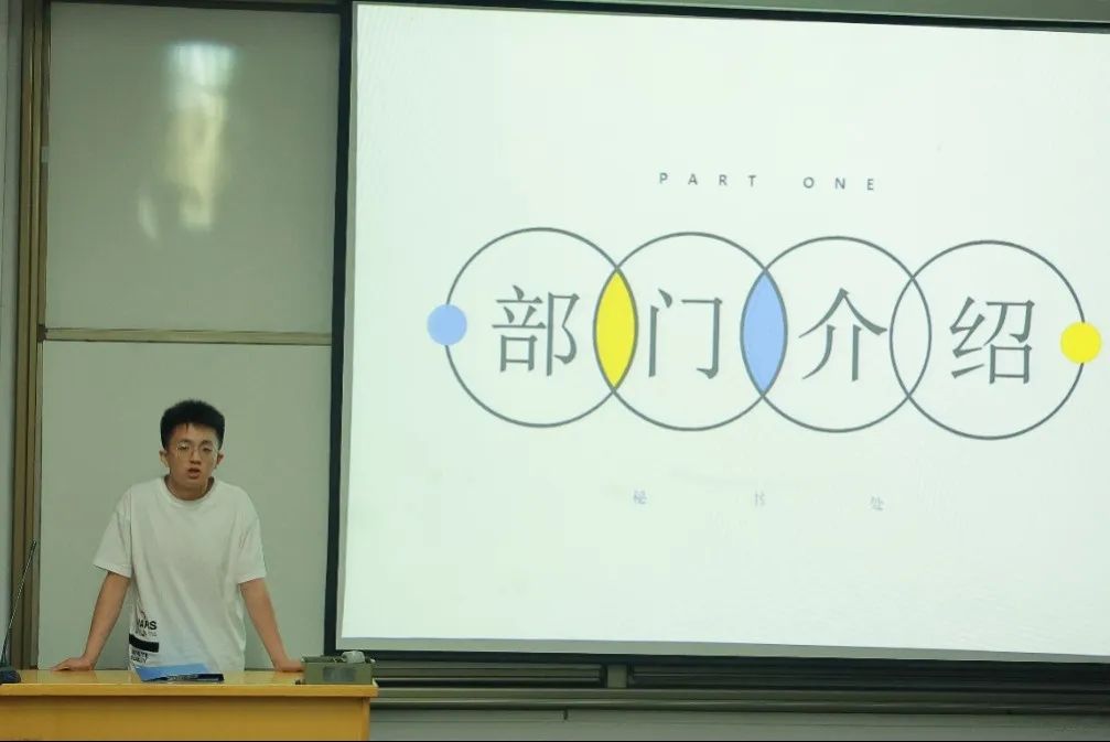 学生会及团委下属组织各部长各显神通,通过放映PPT系统性介绍了各部门的职能和情况,认真详细又不失风趣活泼,对新生表示了诚挚的邀请。