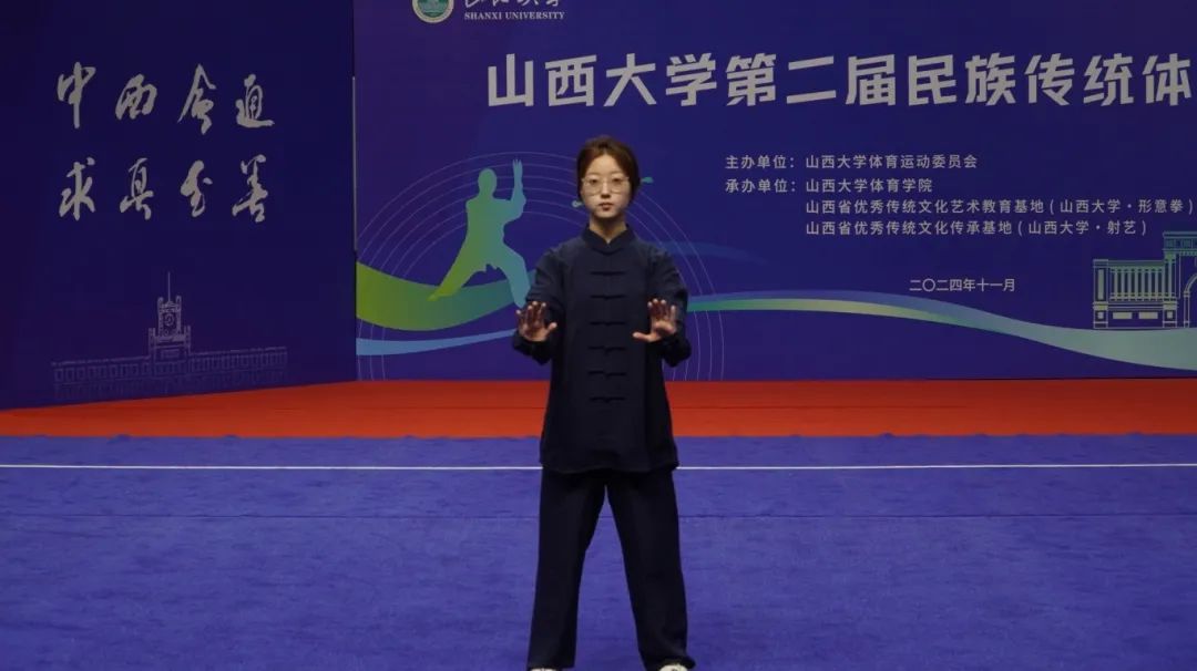 11月9日,我院2023级王一婷参加了山西大学第二届民族传统运动会的女子其他太极拳比赛项目,并以8.57的分数夺得了该项目的金牌。