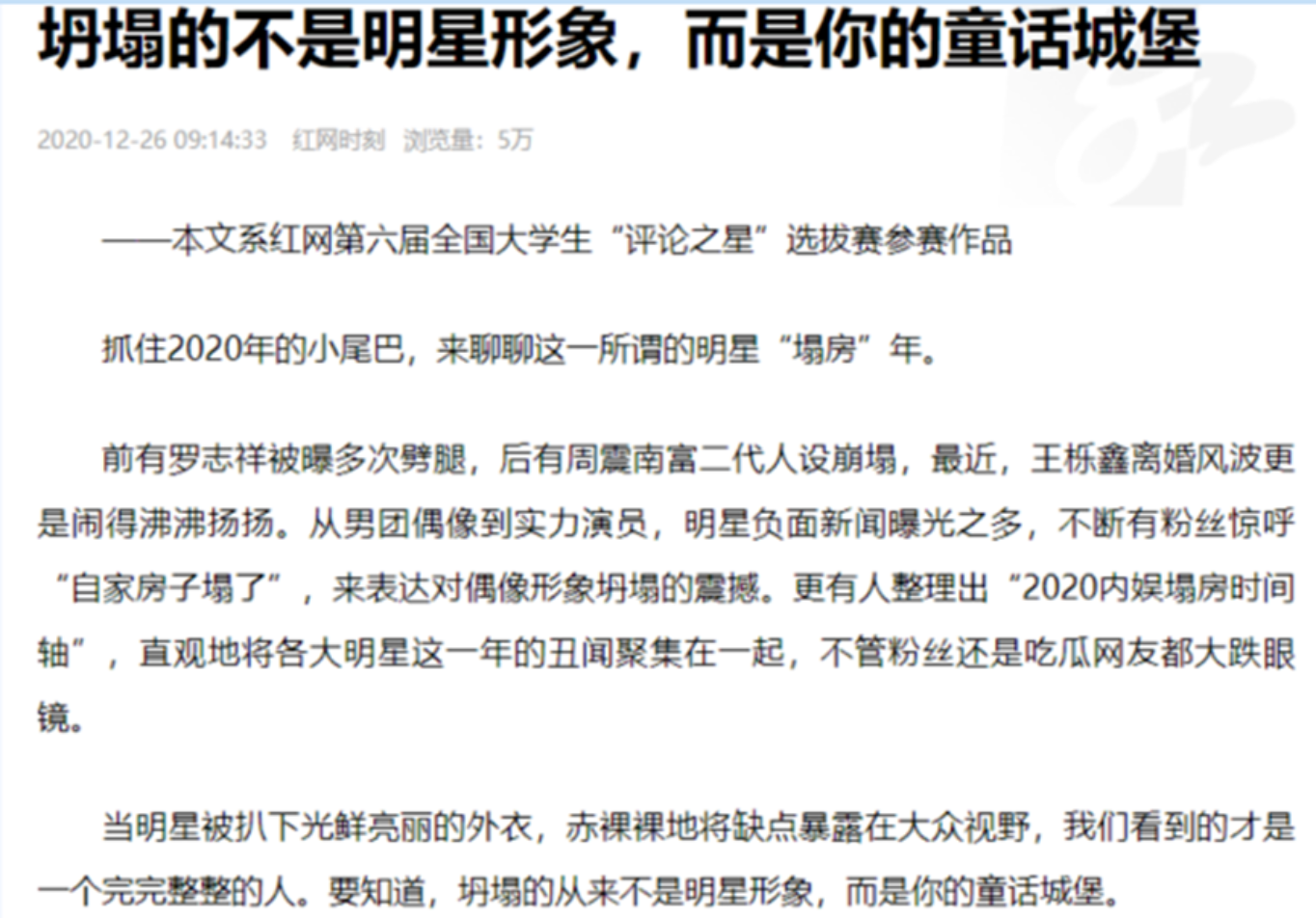 (图2:钟星月第六届全国大学生“评论之星”选拔赛 入围奖作品)