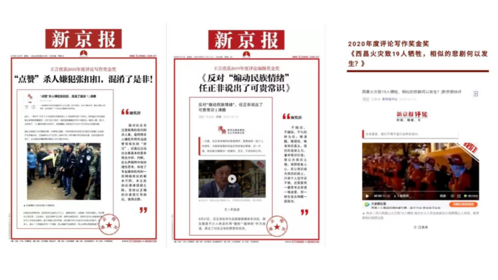(图2:获新京报年度评论写作奖和编辑金奖作品)